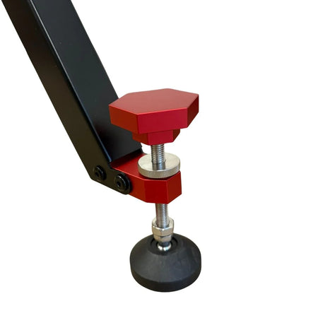 Les pieds du pilier coulissent et se verrouillent en position sans aucun problème. Une fois déployée, le nivellement de la jetée est facile grâce aux pieds de nivellement et ses patins à rotule facilitent le traitement des surfaces inégales.