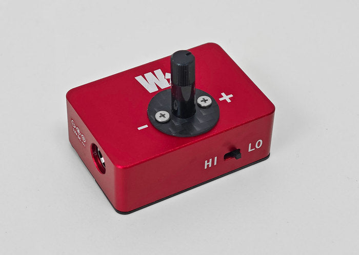 The included dimmer box was designed for use with the White Dwarf. It has two levels of voltage combined with a dimming knob that operates without stepping. The dimming range is an incredible 10 F stops!