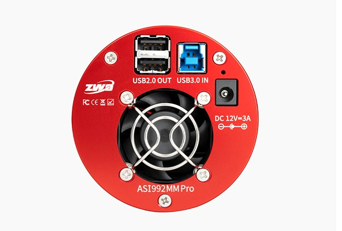 Please Note: All ZWO cooled (Pro) cameras will require an external 12V DC power source in order to operate properly and run the TEC cooler. You have three options: