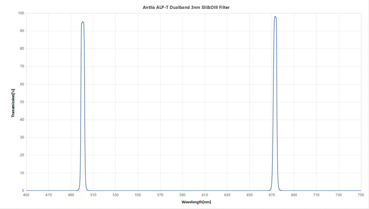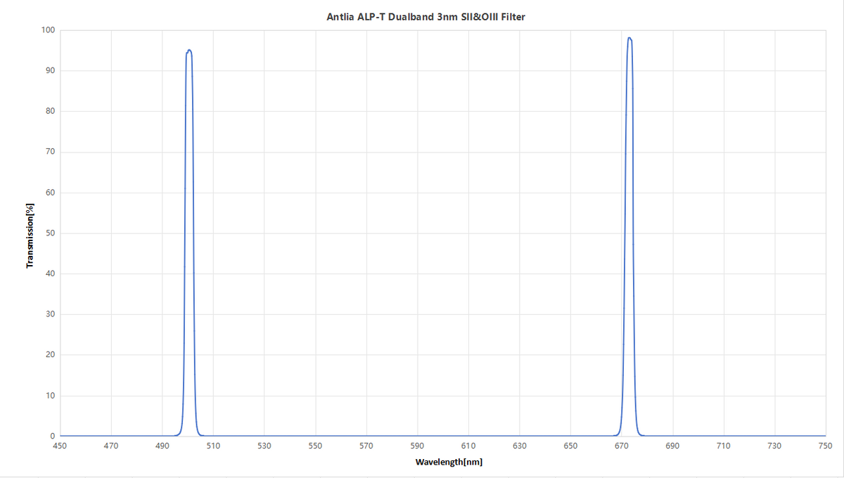 - CWL (Central Wavelength): Sulfur II: 672.4nm, Oxygen III: 500.7nm