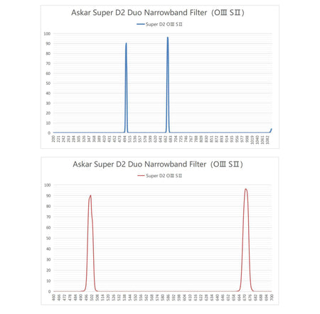 When shooting deep-sky galaxies with colour cameras, a duo-narrowband filter in the Hα and OⅢ bands is often used; whereas with a mono camera, a narrowband filter in the Hα, SⅡ and OⅢ bands is often used, leaving users with colour cameras missing one band of nebula detail. This can be compensated by using the ColourMagic Super D2 Duo-narrowband filter (OⅢ+SⅡ).