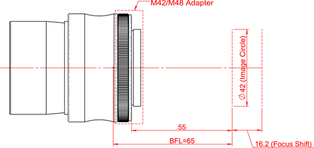 The Founder 0.8X Focal Reducer was designed to reduce the effective focal length of the FOT86 or FOT106 refractors, but it will work with pretty much any f/5 to 5/7 refractor. The RED0.8X has interchangeable M42 male and M48 male mounting threads. The optics, which are fully multi-coated, have a clear aperture of 38 mm.