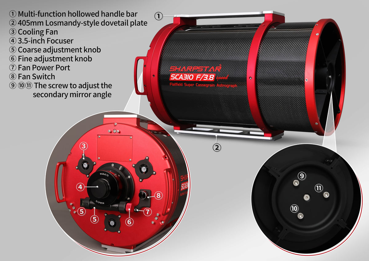 The SCA310 also integrates three efficient cooling fans at the rear. This fan system can be activated before observation to rapidly cool the primary mirror, accelerating thermal equilibrium and significantly enhancing both observing efficiency and the overall user experience.