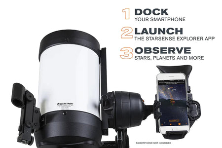 | Included Items: | Optical tube Mount and tripod (preassembled) 25mm and 10mm eyepieces Erect image diagonal StarPointer finderscope Accessory tray StarSense Explorer phone dock |