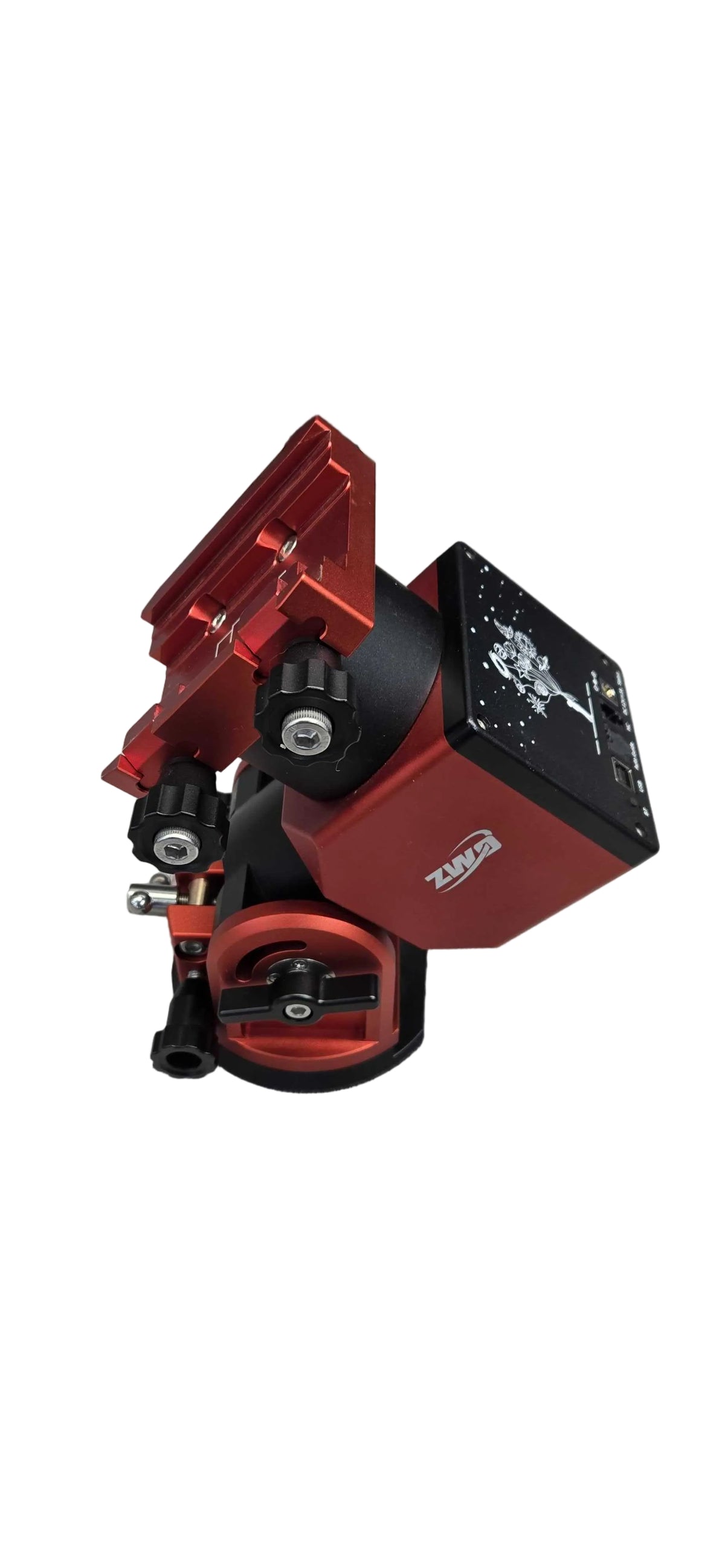 The ZWO AM3 multi-function mount can be used in both alt-azimuth and equatorial mode, and just in case you forget which set up you are in, the status light indicator on the back of the mount shines green for Alt-Az and red for Equatorial! Ā The status indicator is next to the USB, Auto Guide, Hand Controller and DC power ports.