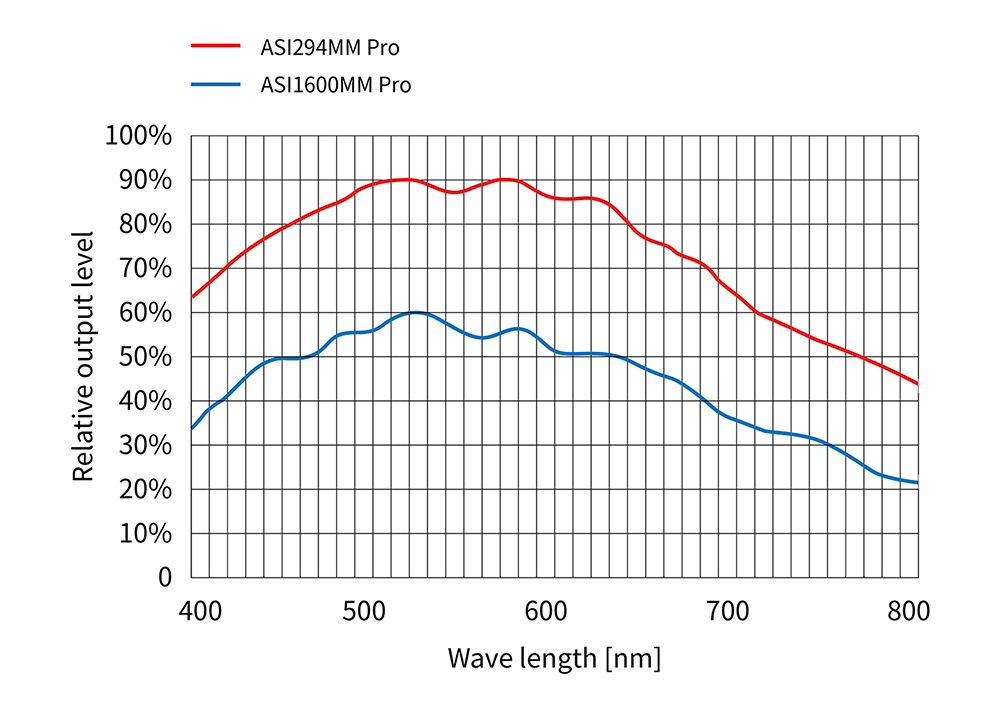 The ASI294MM Pro has a very high QE value, with a peak at about 90%, but also has ultra-low readout noise of 1.2e.
