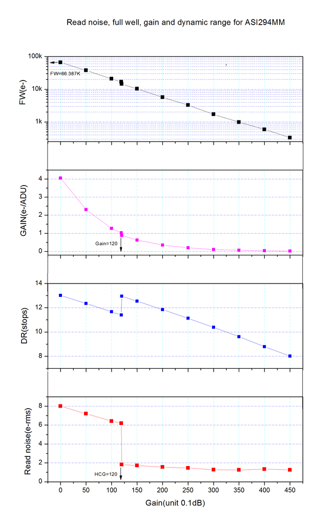 When the gain value is set to 120, the HCG high gain mode is turned on. We’re not saying it’s magic…but we’d like to think it is pretty close. With the HCG-mode turned on, the readout noise is greatly reduced, and the dynamic range is basically unchanged.